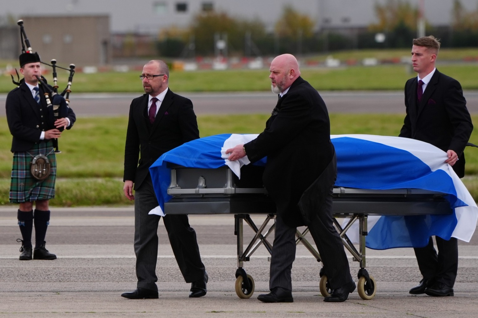 Alex Salmond’s body met by family and piper as plane lands in Aberdeen