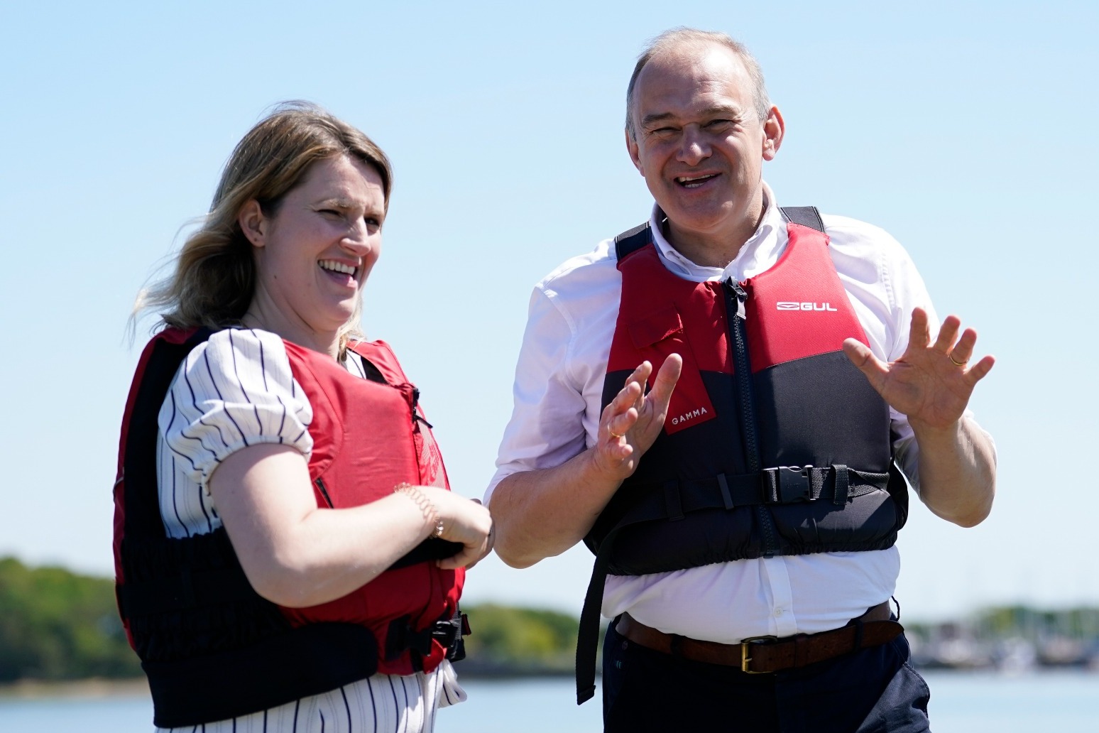Sir Ed smiled as he donned a buoyancy aid for a short boat trip around the Birdham Pool Marina to highlight the area’s natural beauty with Lib Dem Chichester candidate Jess Brown-Fuller.
