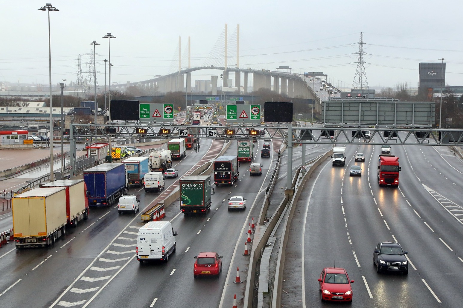 The Dartford Crossing consists of a bridge and two tunnels, which connect Thurrock in Essex with Dartford in Kent.