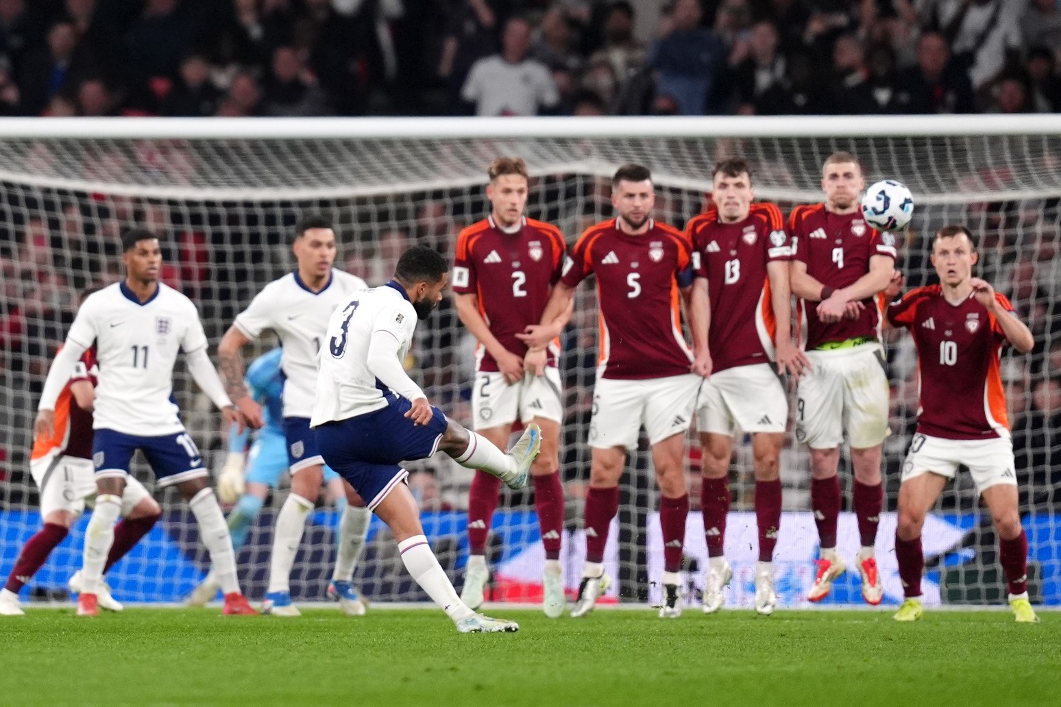 Reece James scored a spectacular first half free kick to set England on their way to a comfortable 3-0 Wembley win