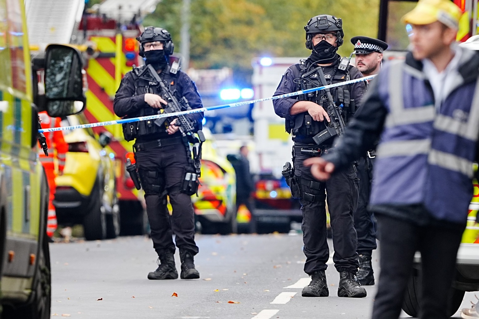 Police said the suspect is believed to be dead after shots were fired by armed police at 9.38am – but the force said that “cannot currently be confirmed due to safety issues surround suspicious items on his person”.