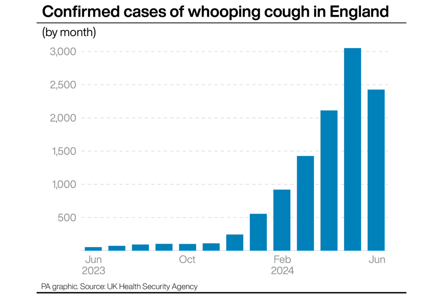 Confirmed cases in the second quarter, from April to June, exceeded those in any quarter of the last major whooping cough outbreak in 2012.