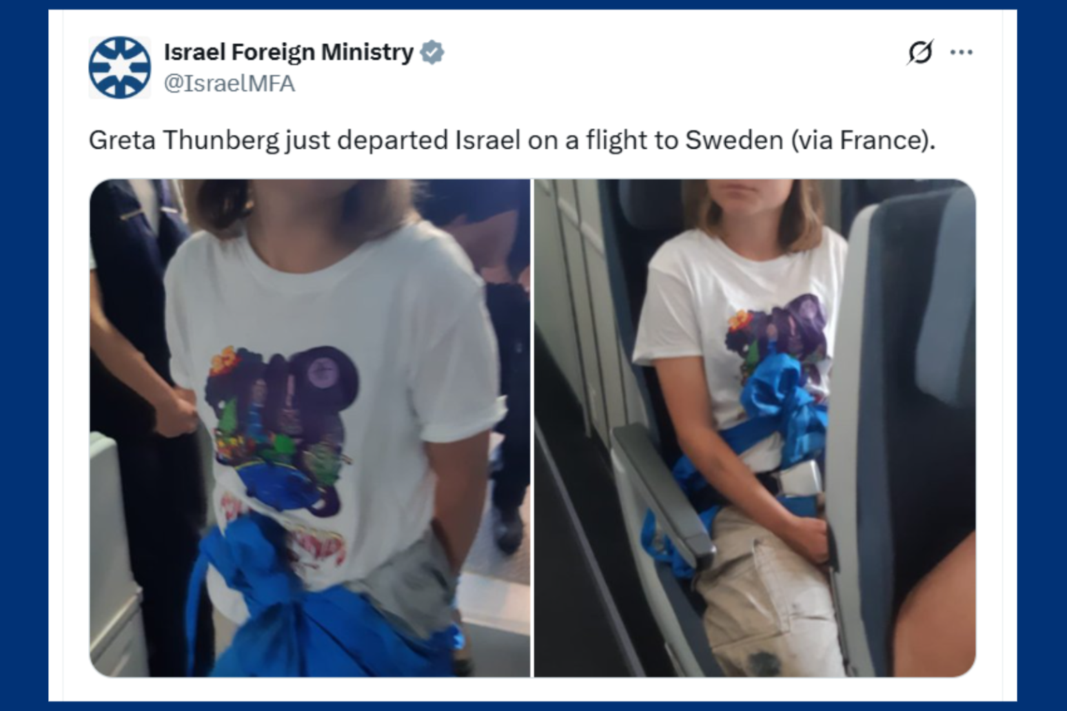 In a post on X, Israel’s Foreign Ministry shared a photo of Ms Thunberg on a plane, saying that she was heading for France before continuing to Sweden.
