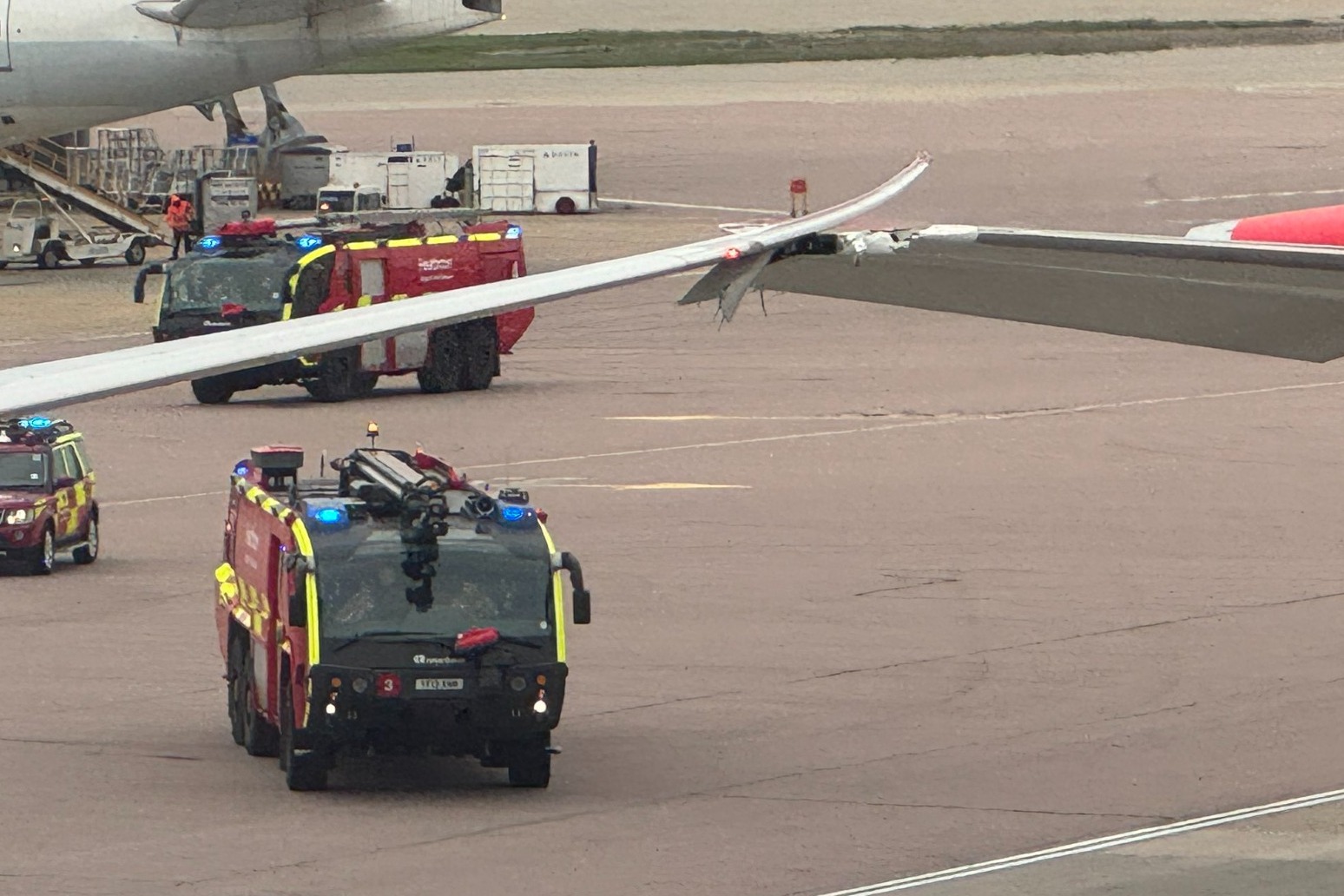 Footage posted on social media shows a Virgin Atlantic plane’s wing touching a British Airways aircraft, surrounded by emergency services.