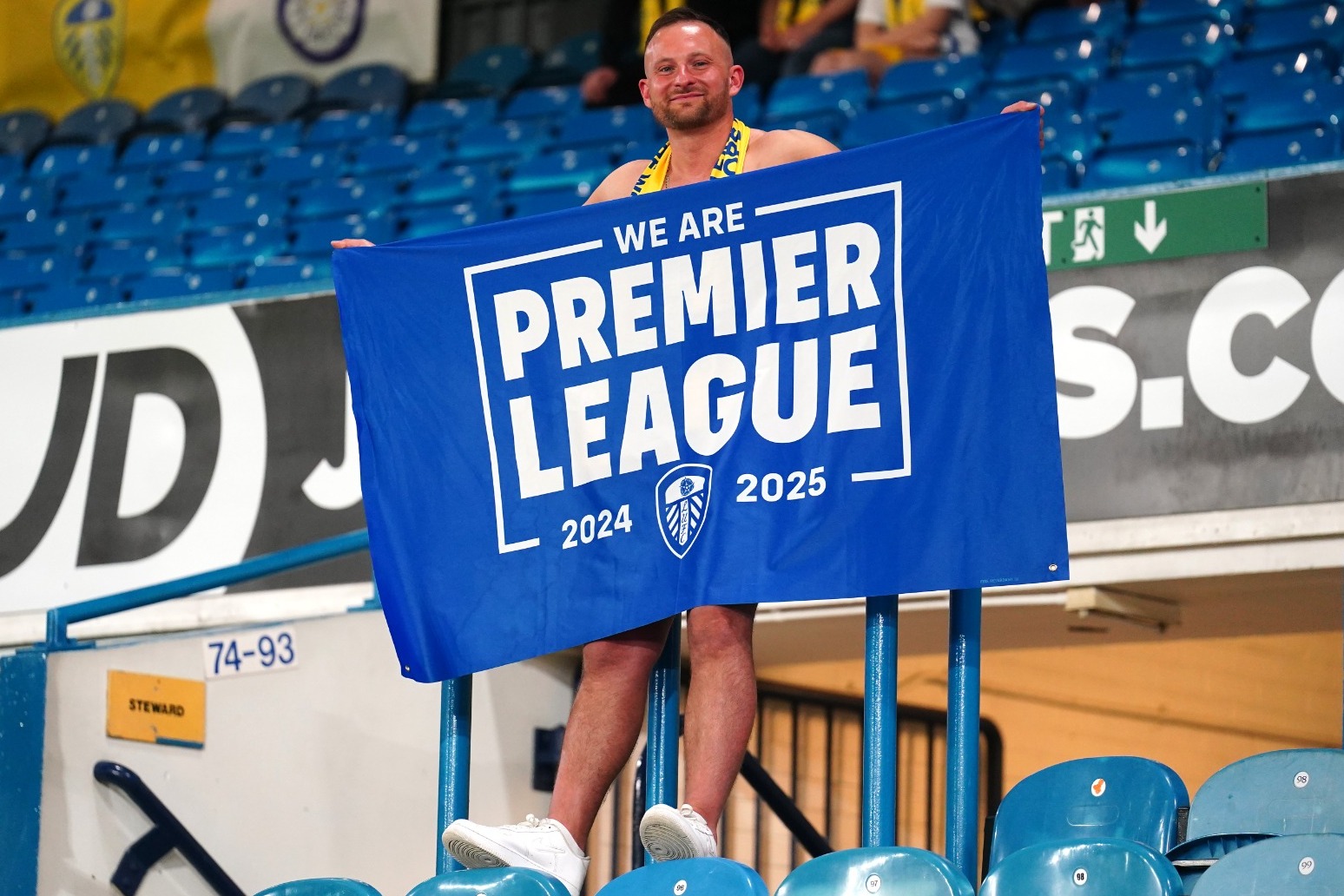 Party celebrations resumed at Elland Road after last week’s 6-0 thrashing of Stoke and Sheffield United’s defeat at Burnley, which guaranteed the Whites and the Clarets a top-two finish.