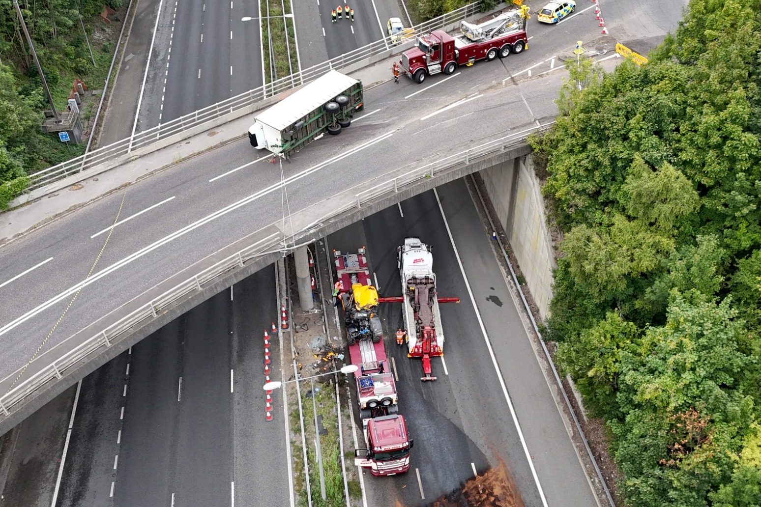 National Highways said “a significant recovery and repair operation” would be ongoing for some time, with the M20 closed in both directions between junctions one and three.