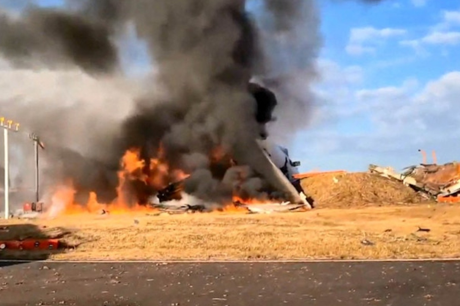 Other local TV stations aired footage showing thick plumes of black smoke billowing from the plane, which was engulfed in flames.