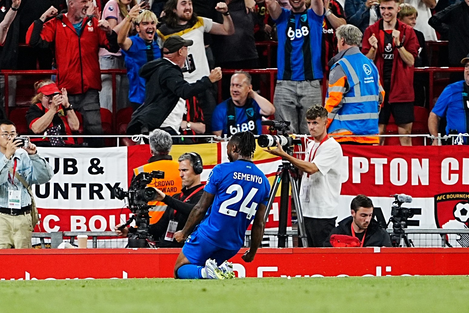 After the incident, Semenyo scored twice in the second half to help bring Bournemouth back from two goals down at Anfield before Liverpool went on to eventually win the contest 4-2.