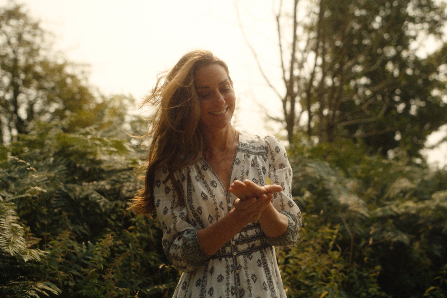 Kate’s heartfelt message about her cancer journey is spoken over images showing the Waleses and their children enjoying the outdoors, walking through woods and the couple shown cuddling as they hold hands.