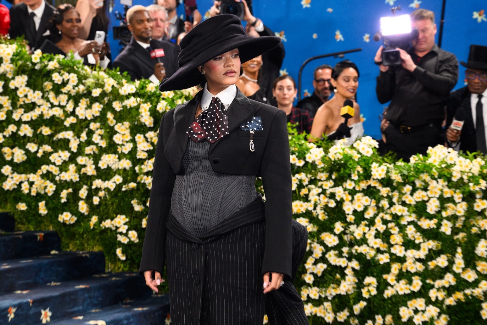 Rihanna debuts baby bump on star studded Met Gala blue carpet