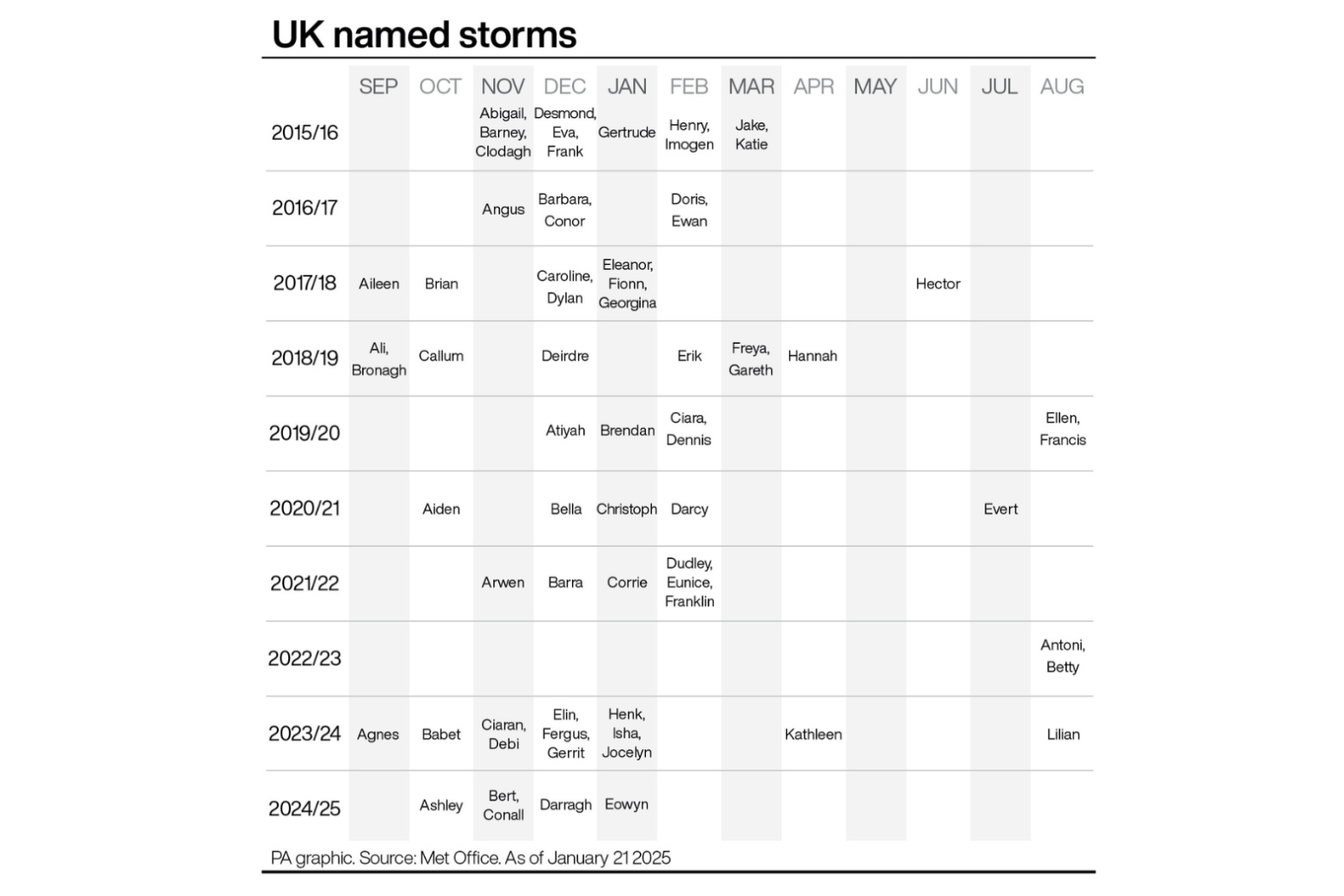 The forecaster advised securing loose items outside homes, including bins, garden furniture, trampolines and sheds, and gathering torches and batteries in case of any power cut.
