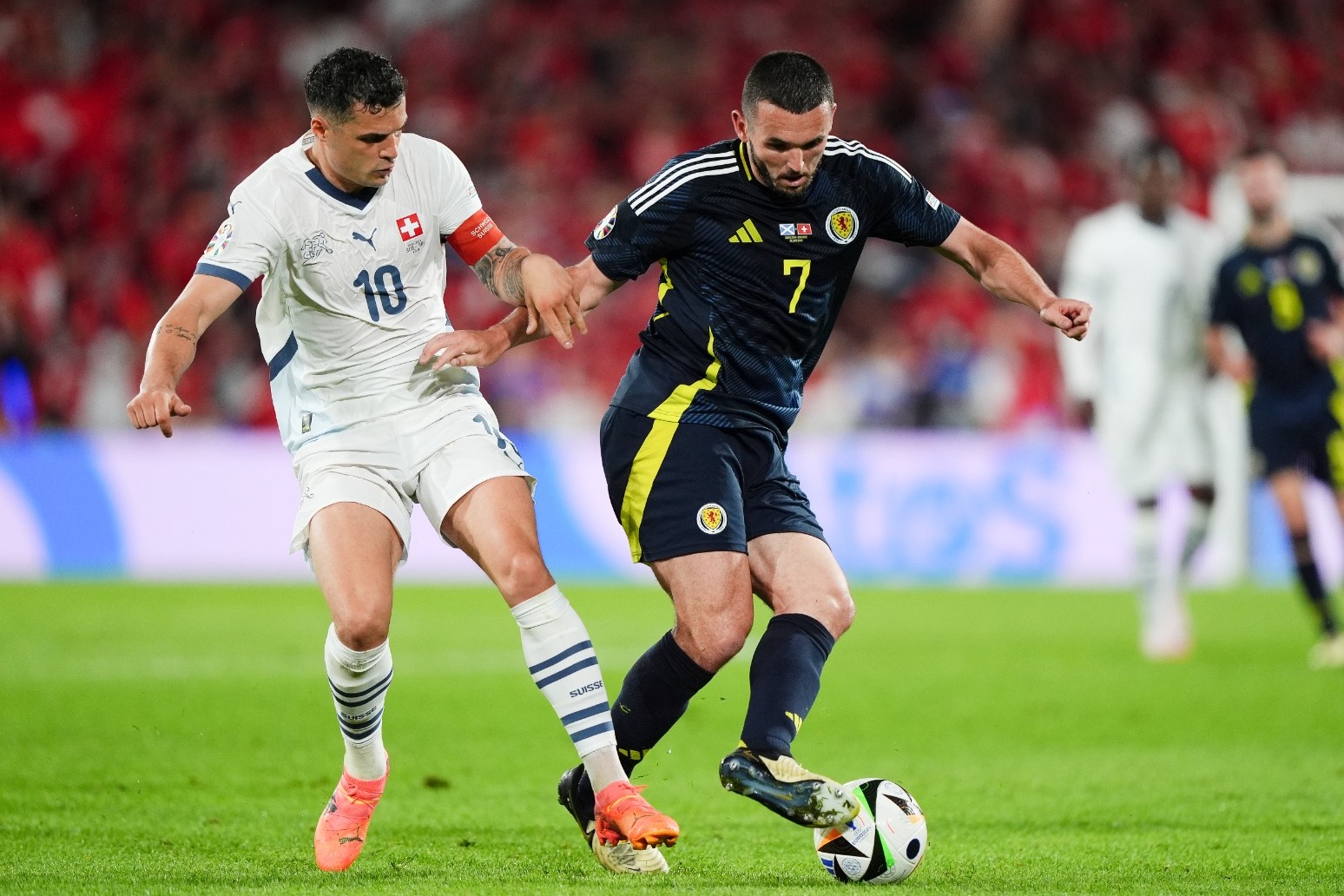 However, joy was replaced by despair in the 26th minute when returning Xherdan Shaqiri took advantage of an Anthony Ralston error to level with a world-class finish.
