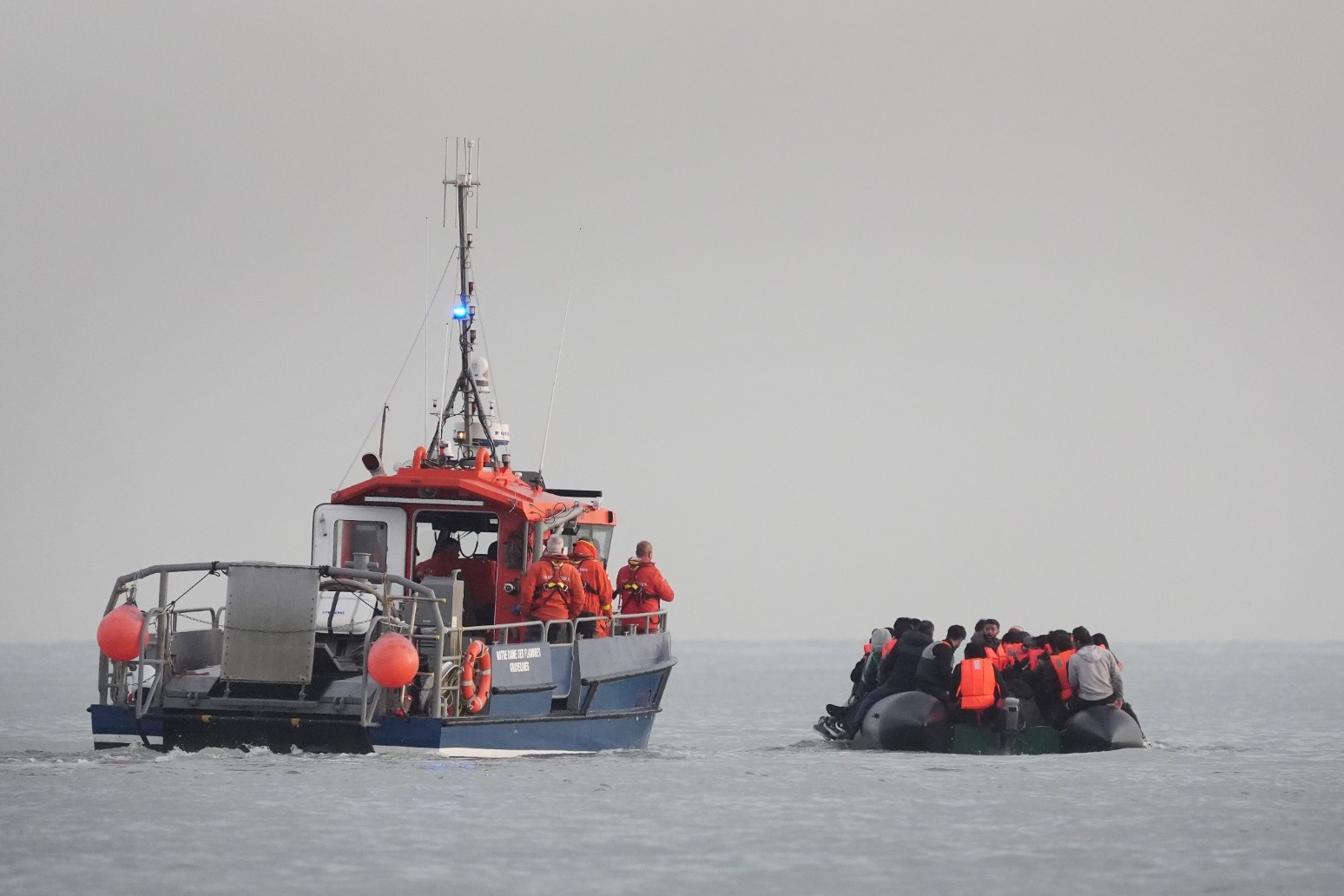 French authorities were then pictured escorting a small boat.