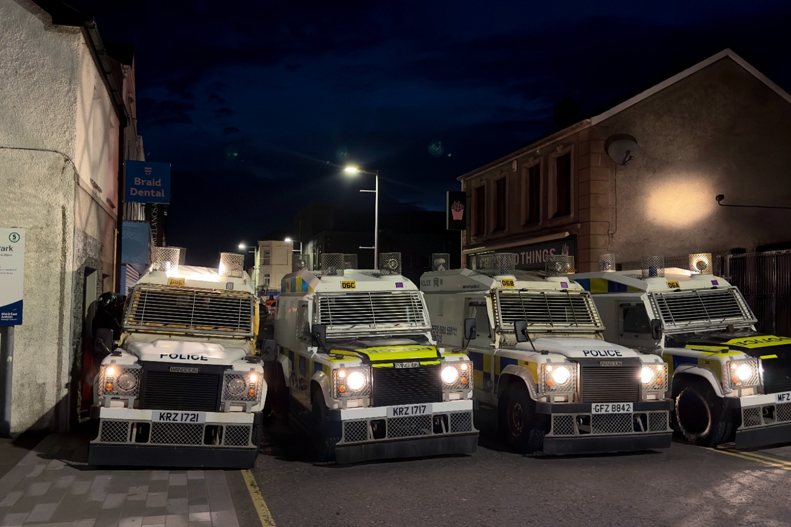 In the town on Wednesday, the PSNI deployed riot police for a third night in a row as hundreds gathered around the Clonavon Terrace area.