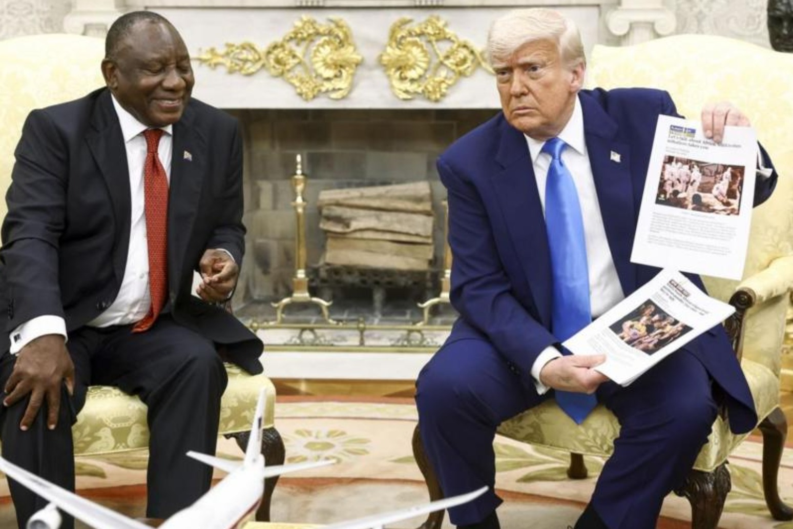 President Donald Trump used a White House meeting to confront South African president Cyril Ramaphosa, accusing his country of failing to address the killing of white farmers.